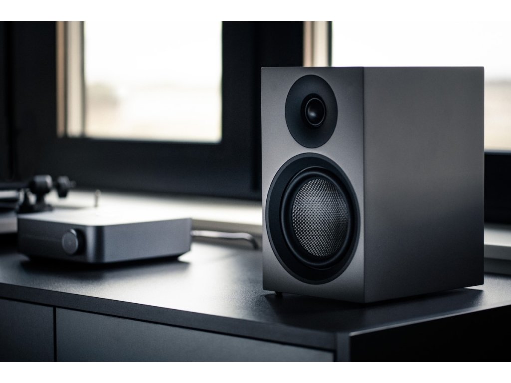 2-pásmové regálové reprosoustavy Speaker Box 5 E Carbon se zadním bassreflexem nabízí překvapivě konzistentní a prokreslený zvuk včetně prostorových kontur. V dostatečně tuhé a akusticky upravené skříni z MDF je umístěn 25 mm výškový reproduktor s hedvábnou kalotou a 130 mm středo-basový reproduktor s membránou z uhlíkového kompozitu a skelných vláken, která zvyšují tuhost membrány a stojí za nízkým zkreslením i při vyšších úrovních poslechu. Velký silný magnet stojí za důraznou basovou odezvou. Velmi plochá frekvenční odezva 65 Hz až 20 kHz je zárukou muzikálnosti projevu a detailní reprodukce. Bez problémů ozvučí menší a střední domácí prostory.