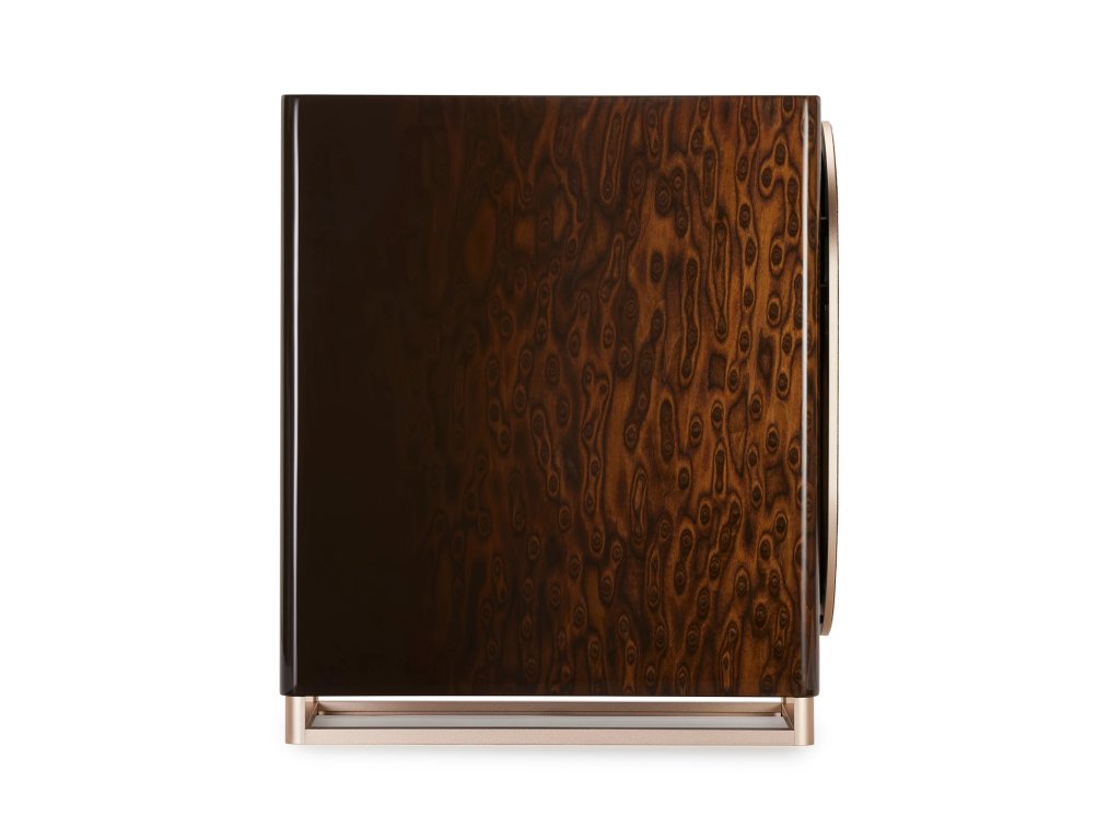 Navenek se Capella pyšní úchvatnou lakovanou skříní ve čtyřech barevných provedeních. Ultralesklý lak ukrývá vznešenou texturu ořechového dřeva, které odhaluje všechny své nuance a barevné kontrasty v závislosti na světelných podmínkách a úhlu, jakým se na něj díváte. Jemné křivky reproduktoru plynule přesahují do hliníkového podstavce v provedení Champagne, který dokonale komplementuje estetickou i akustickou stránku tohoto mistrovského díla.